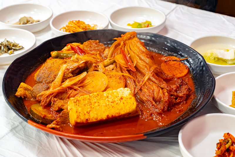 This folk dish of Daegu features a soybean soup with deep-fried doughnuts made from glutinous rice. The soup is served hot and is made from ground soybean. Slices of glutinous rice doughnuts are put into the soup. Chewy glutinous rice doughnuts go perfectly well with the rich and savory soybean soup. Nuts like peanuts can be added to produce a rich flavor, sugar and salt to taste. In Daegu, a toasted sandwich is often eaten together with this dish as a meal.